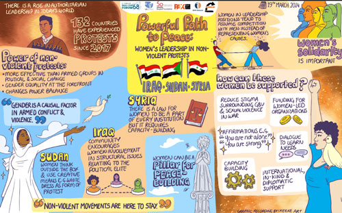 المساهمة في فعالية "الشجاعة النسوية من أجل السلام البيئي" التي ركّزت على الآثار البيئية للنزاعات المسلحة، والدور القيادي للنساء والفتيات والأقليات الجندرية في بناء السلام البيئي، خاصة في ظل تأثرهن غير المتكافئ بهذه الأزمات وتهميش أدوارهن في صنع القرار.